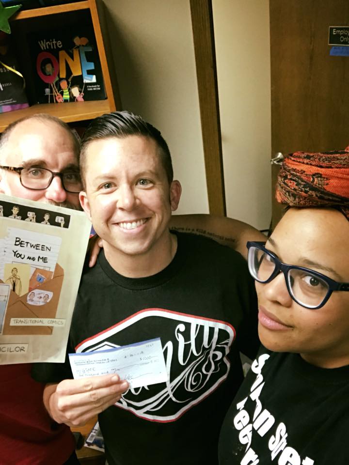 36199904_10156420244336649_82731528366325760_n Previous Published July 18, 2018 at 720 × 960 in Between You & Me: Transitional Comics! Dropping off a $1,000 check from the proceeds of the book to Brian J and Ali Muldrow at GSAFE! Thanks to Lynda Barry and the Chazen family for making this donation possible.