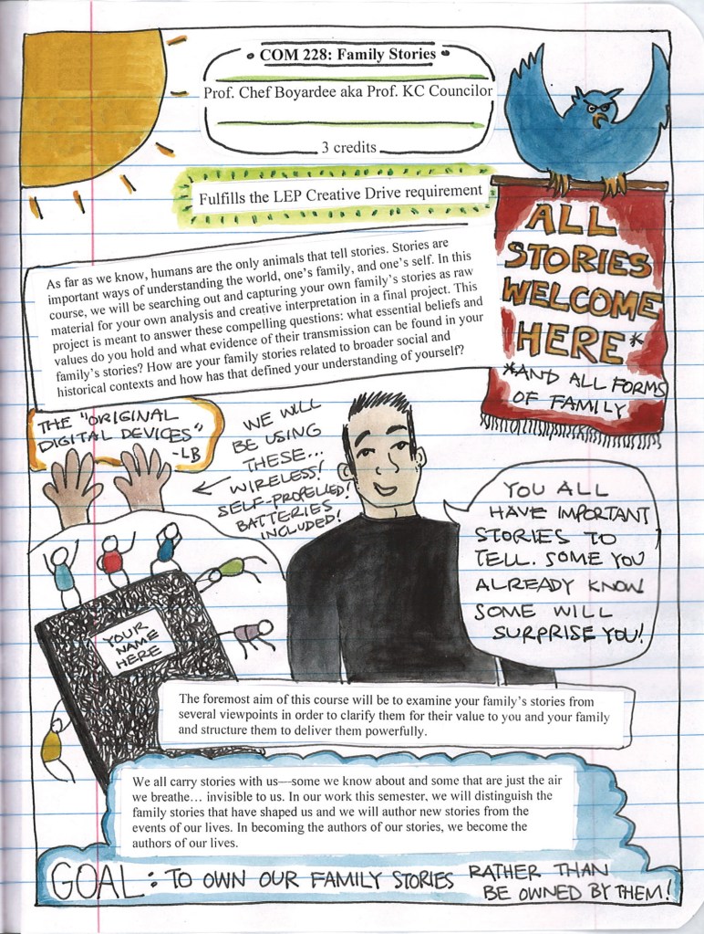 I have been teaching at Southern Connecticut State University since the fall of 2018, and before that, I taught communication and humanities courses at UW-Madison for 6 years. I started using drawing in the classroom after studying with Lynda Barry and never looked back. I found that implementing a short drawing practice into each class meeting increased student engagement, attendance, and course evaluations exponentially; many students now report that drawing helped open them to new ideas, bond with each other, discuss controversial topics with greater ease, and communicate more fully. And it makes class fun! Read some of their testimonials here.